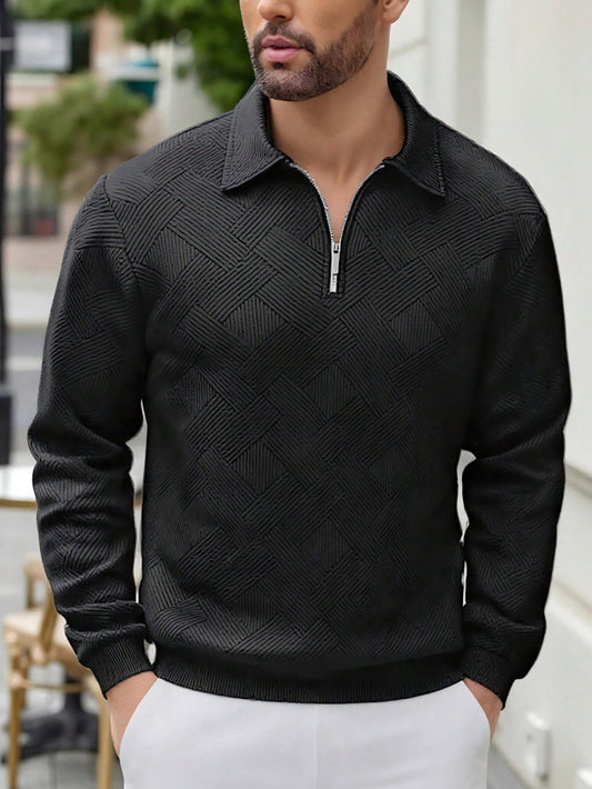 1 beige polotrui met halve rits voor heren, onmisbaar voor de start van het schooljaar in de herfst/winter | Visgraatmotief jacquardgebreid, perfect voor vakantie en vrijetijdskleding | Geüpgrade modestijl