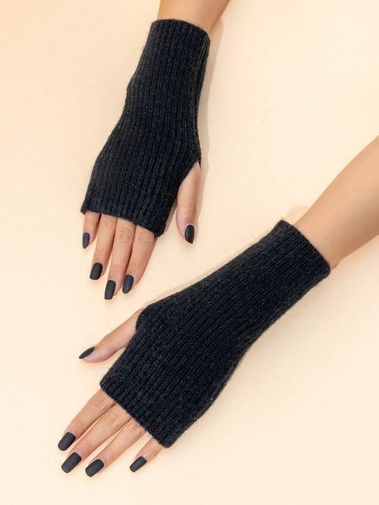 1 paar eenvoudige effen kleur warme gebreide elastische handschoenen