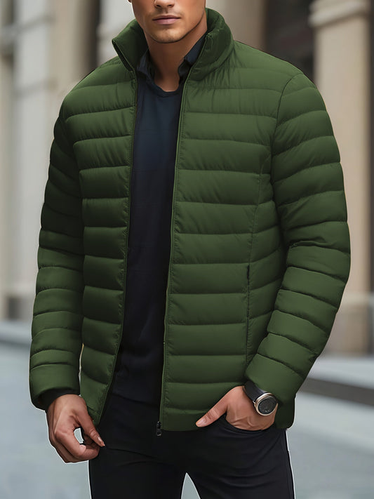 Herfst- en Winterjas voor Heren - Winddicht, Warme Jas met Ritszakken, Effen Kleur, Opstaande Kraag, Ritssluiting, Ideaal voor Woon-Werkverkeer, Dagelijks Gebruik, Reizen en Outdoor Activiteiten
