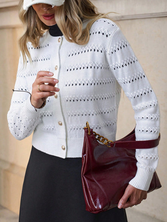 SHEIN Clasi Lente en herfst casual korte holle-out cardigan herfst truien herfst dames truien cardigan trui, lange mouwen tops