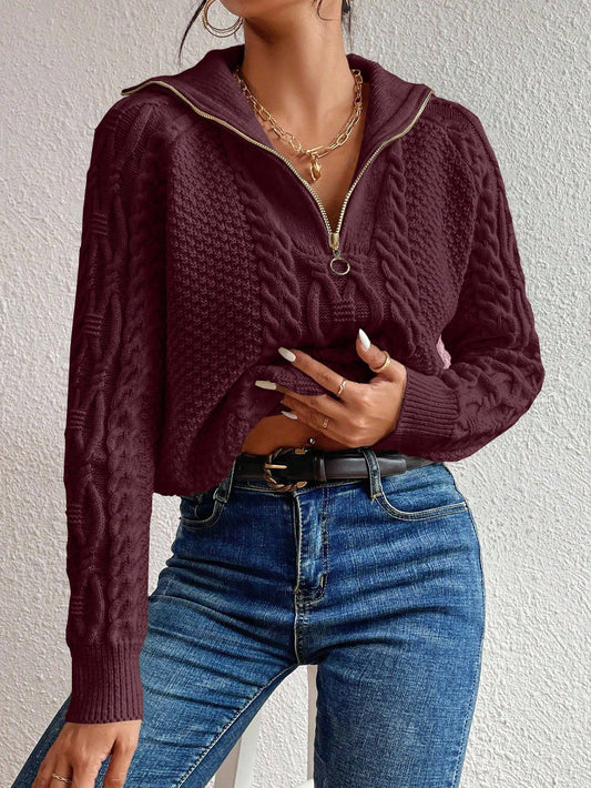 SHEIN LUNE Kabelgebreide trui met halve rits en raglanmouwen