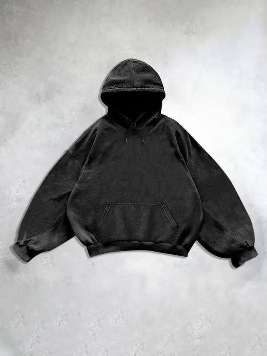 Vintage Gewassen "Gedelde Rook Schaduw" Grafische Hoodie voor Vrouwen - Casual Pullover met Trekkoord en Artistiek Gezichtsontwerp, Zwart, Perfect voor Herfst & Winter, Herfst-Winter Kleding | Artistieke Print Hoodie | Hoodie met Trekkoord