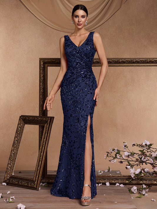 Mousserende V-hals Cocktailjurk, Elegante Mouwloze Bodycon Jurk Voor Feest & Banket, Dameskleding Bruiloft/Avondjurk/Gelegenheid/Verloving/Ceremonie
