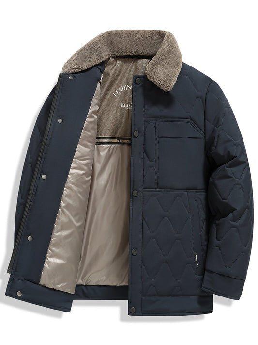 Heren Marineblauw & Beige Gewatteerde Jas - Casual Zakelijke Stijl met Ritssluiting, Polyester Voering en Zakken voor Herfst/Winter, Herfst Winter Jas | Gewatteerde Jas | Polyester Jas
