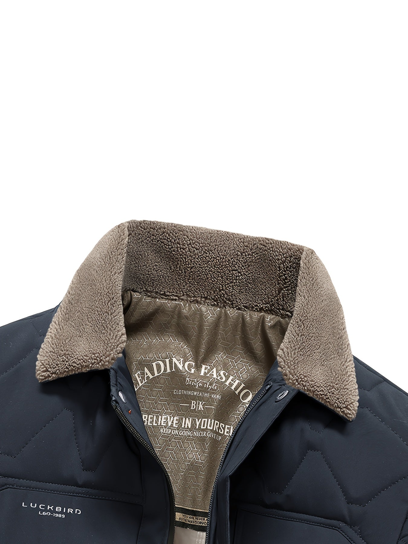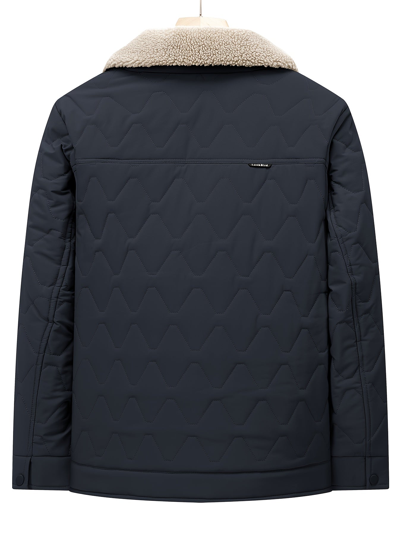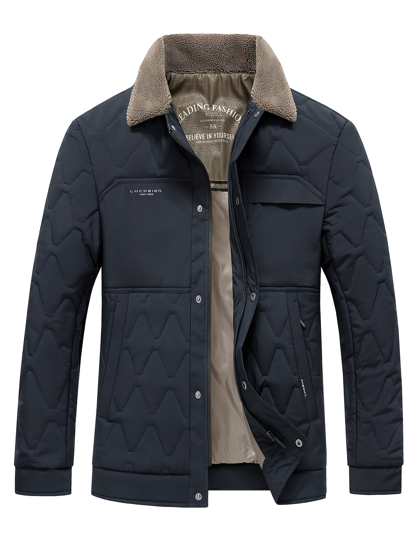 Heren Marineblauw & Beige Gewatteerde Jas - Casual Zakelijke Stijl met Ritssluiting, Polyester Voering en Zakken voor Herfst/Winter, Herfst Winter Jas | Gewatteerde Jas | Polyester Jas