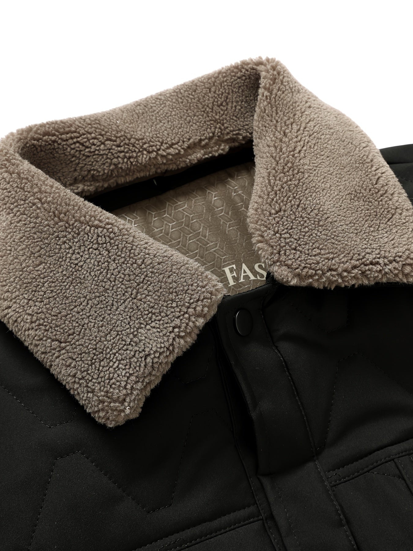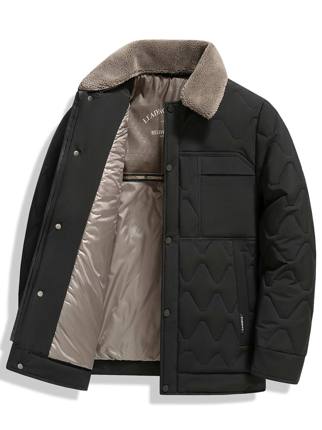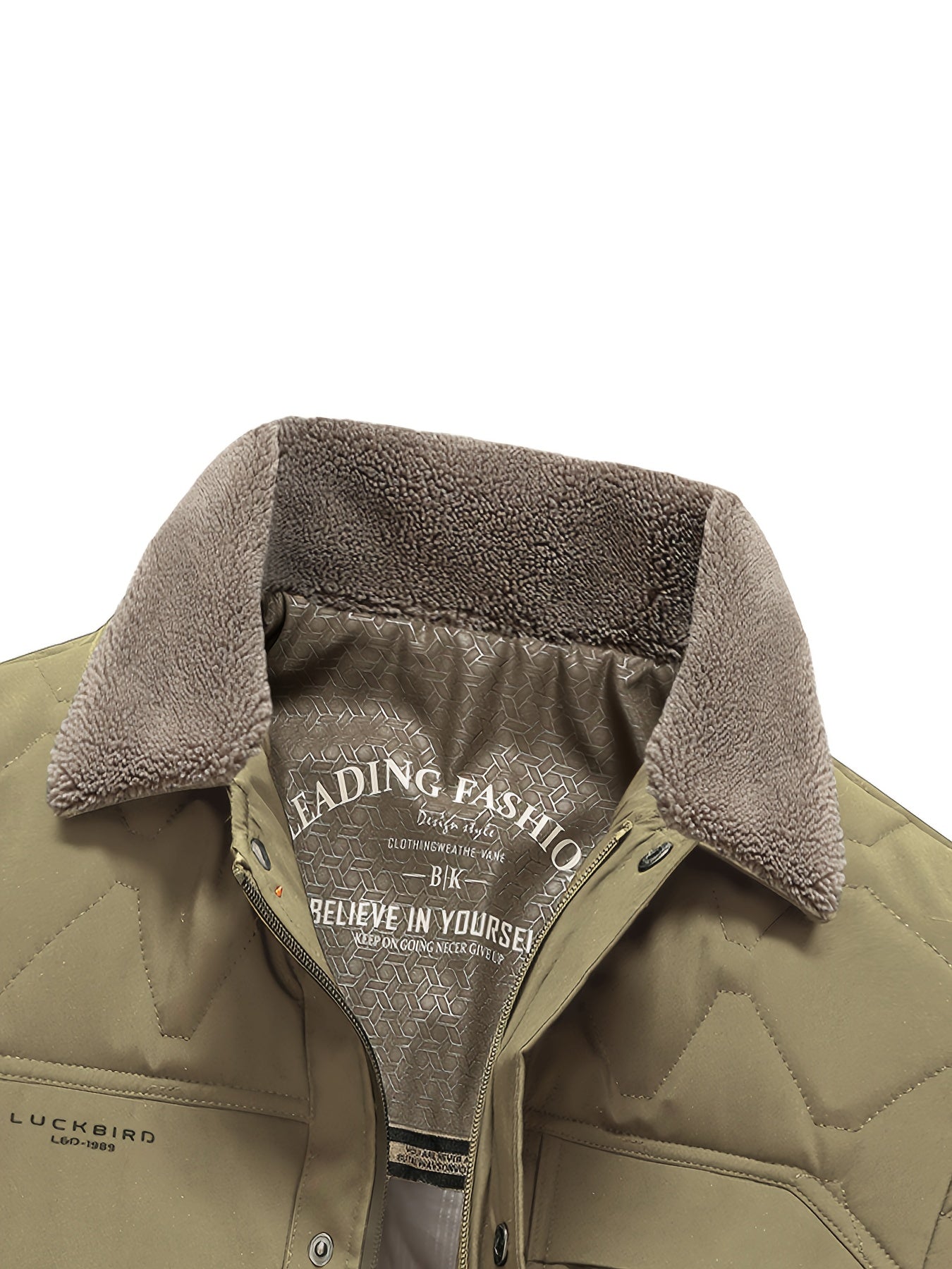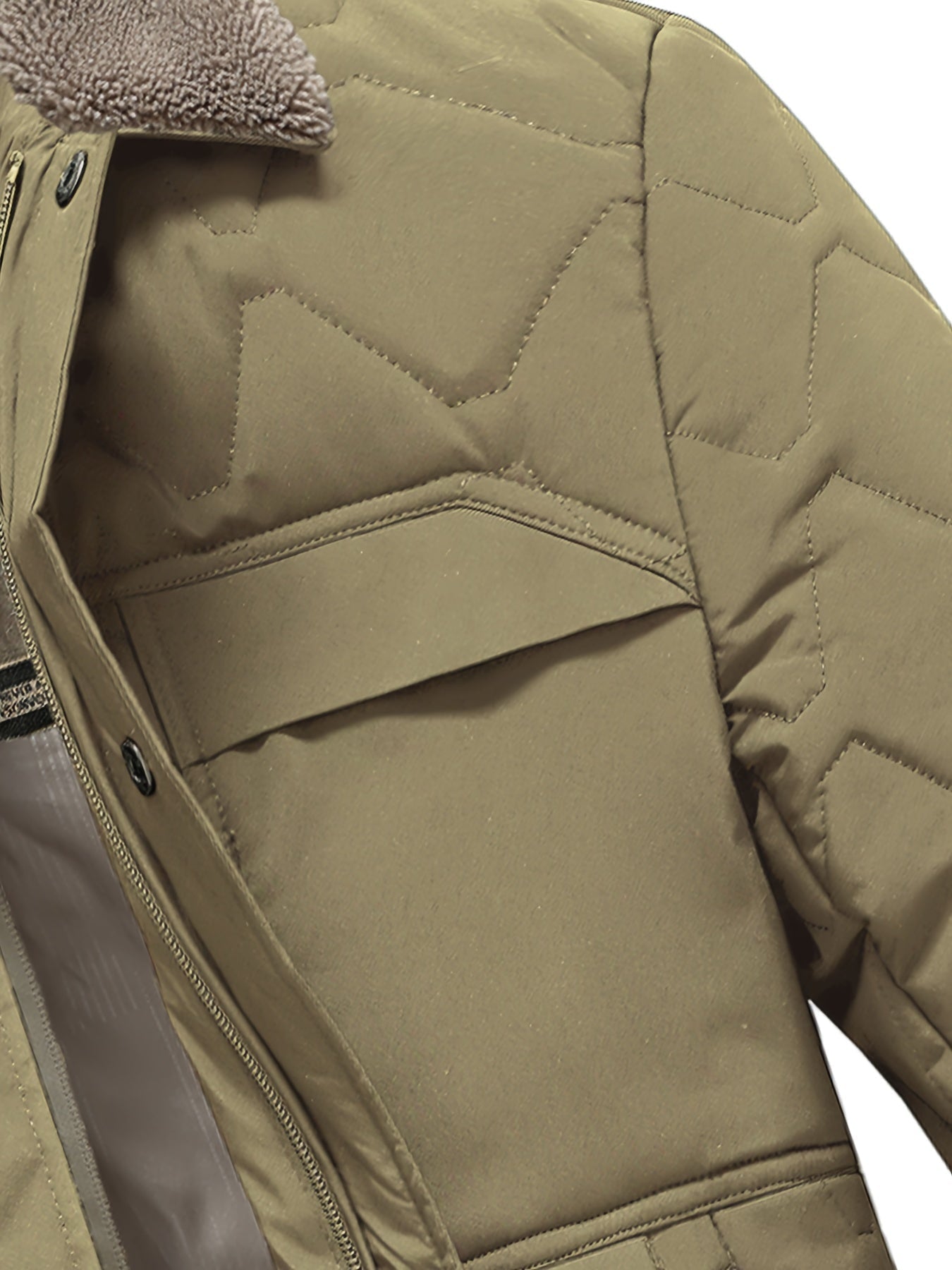 Heren Marineblauw & Beige Gewatteerde Jas - Casual Zakelijke Stijl met Ritssluiting, Polyester Voering en Zakken voor Herfst/Winter, Herfst Winter Jas | Gewatteerde Jas | Polyester Jas