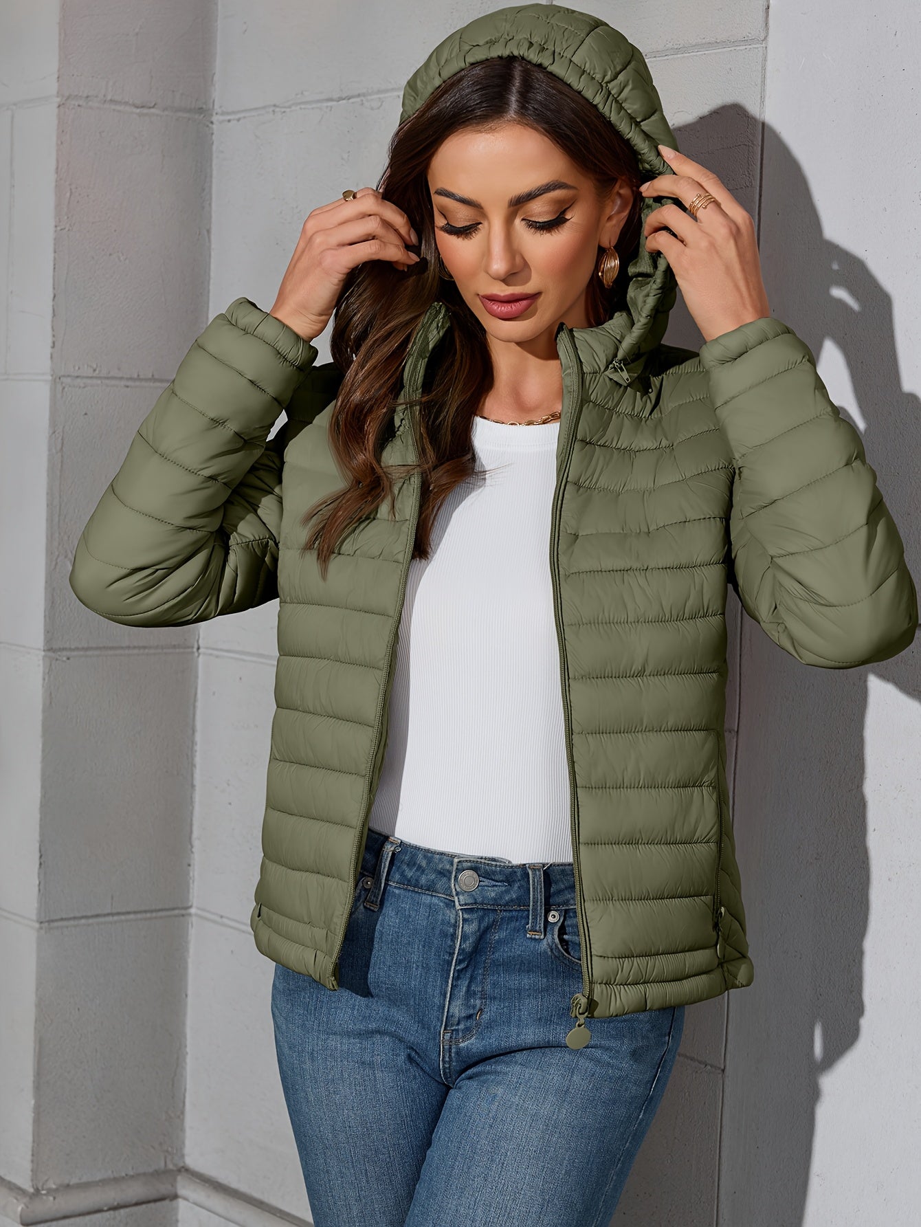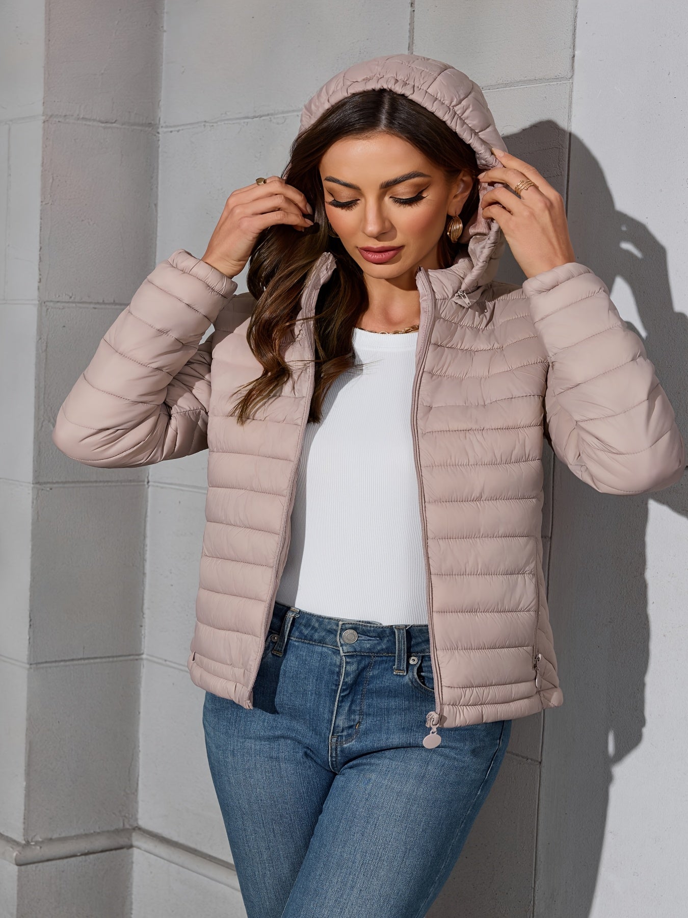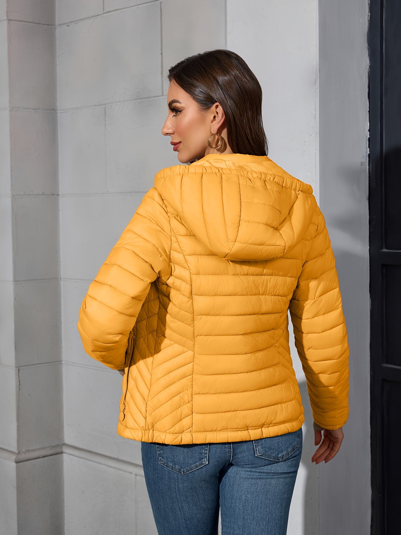 Vrouwen Lichtgewicht Hooded Jas voor Herfst Winter - Casual Commuter Bovenkleding met Zakken, Normale Pasvorm Lange Mouw Effen Kleur, Handwasbaar Veelzijdige Dag tot Nacht Stijl, Schattig Jacket, Alledaags Comfortabel Dragen, Gezellige Warme Stof