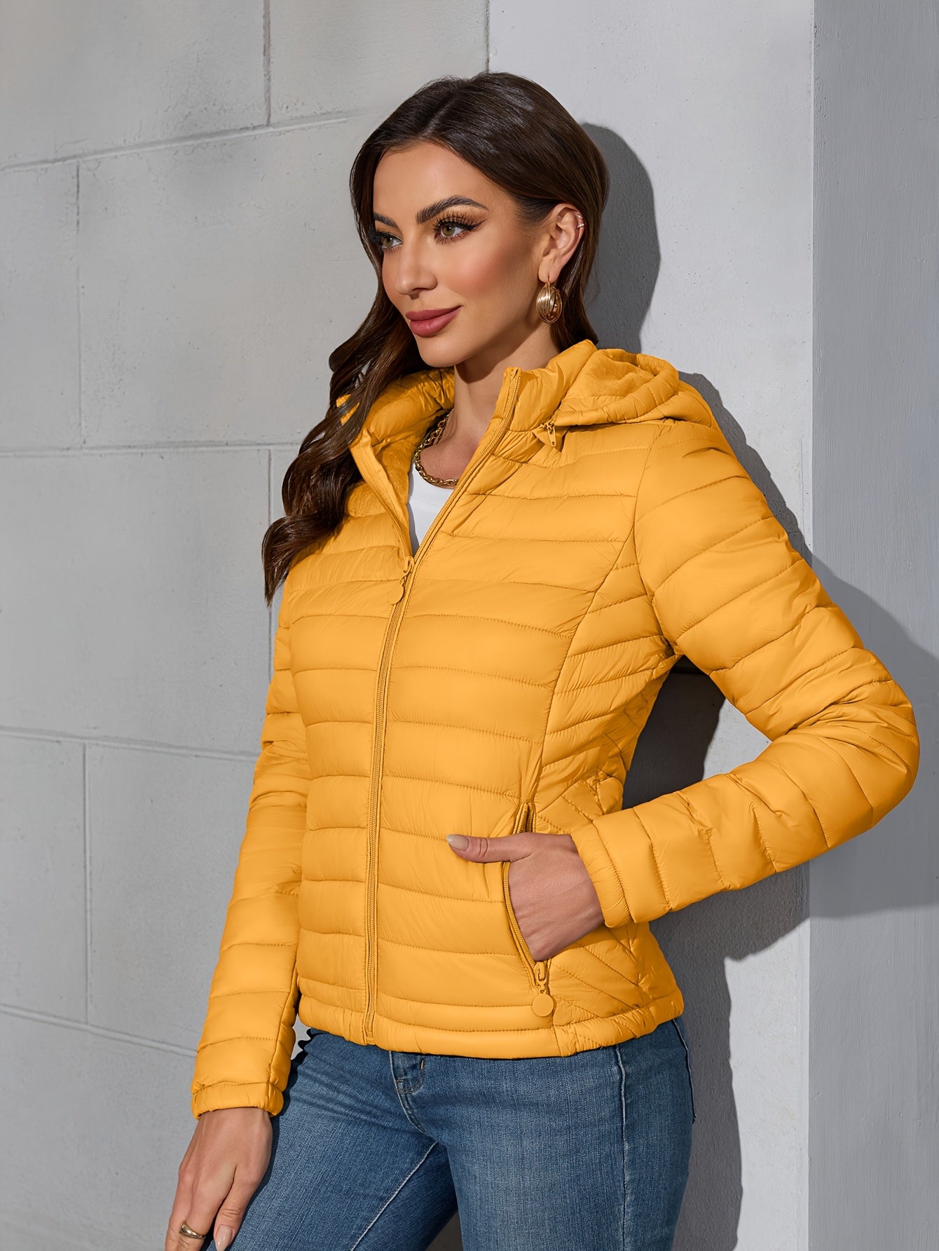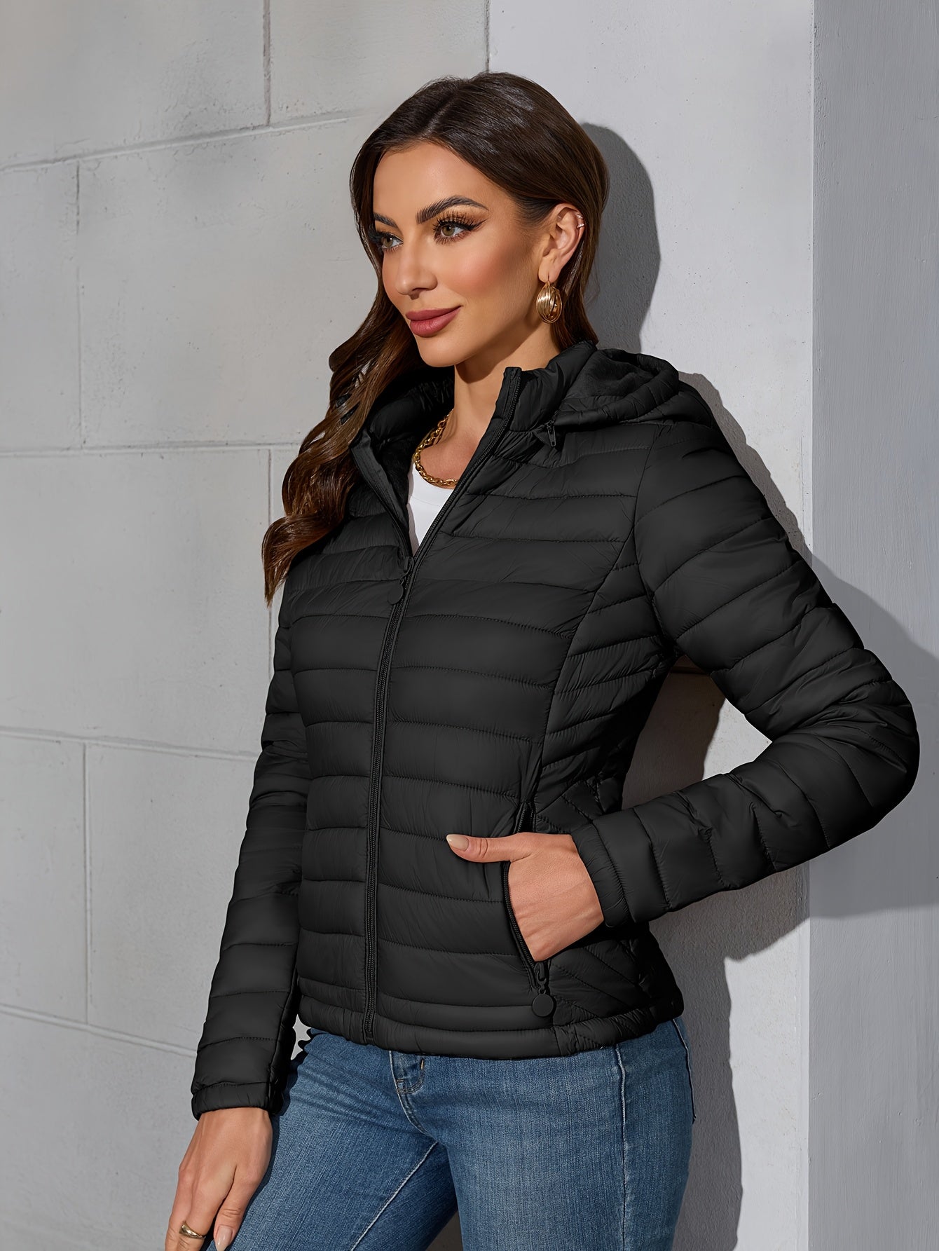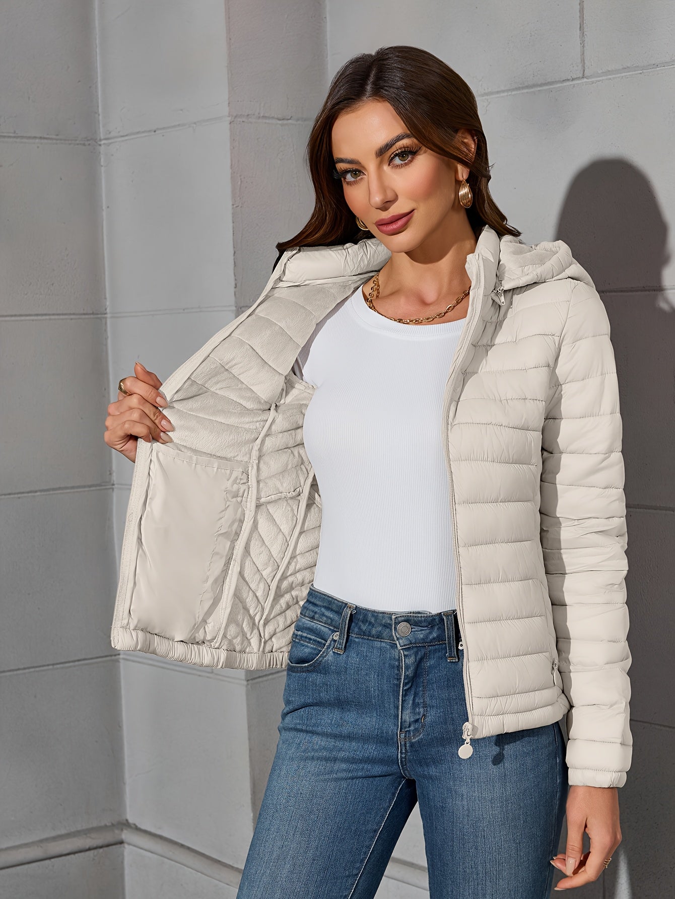 Vrouwen Lichtgewicht Hooded Jas voor Herfst Winter - Casual Commuter Bovenkleding met Zakken, Normale Pasvorm Lange Mouw Effen Kleur, Handwasbaar Veelzijdige Dag tot Nacht Stijl, Schattig Jacket, Alledaags Comfortabel Dragen, Gezellige Warme Stof